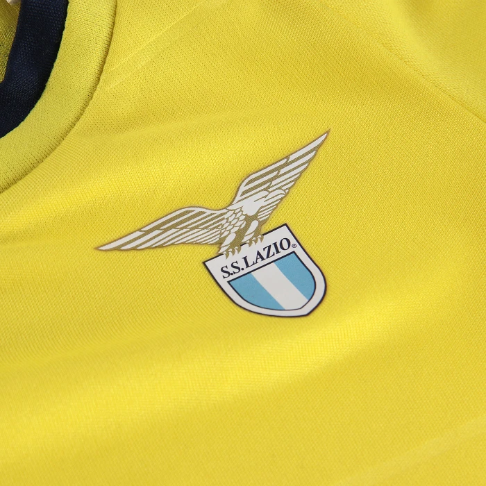 Il design della maglia da ragazzo presenta la scritta S.S. Lazio stampata a rilievo tono su tono, all'interno di un motivo geometrico che si ripete sul davanti. Il collo a V, i polsini delle maniche in tessuto con contrasto bianco/navy e il logo del club in silicone mostrato fieramente sul petto a sinistra, definiscono lo stile della maglia Away.