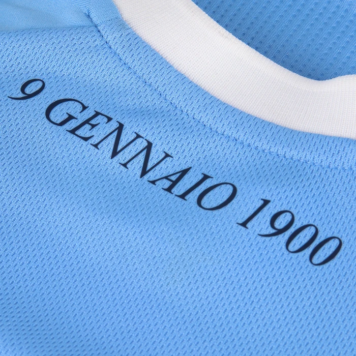 Maglia Pannello frontale in rilievo, retro in mesh e maniche raglan lisce. Colletto girocollo e polsini in costina tinta unita. Aperture laterali al colletto con due bottoncini automatici per lato, per una vestibilità facile e sicura. Nastro interno collo semplice. Crest principale del club e logo Mizuno applicati a caldo su petto e maniche. Scritta 9 GENNAIO 1900 applicata a caldo sul retro del collo.