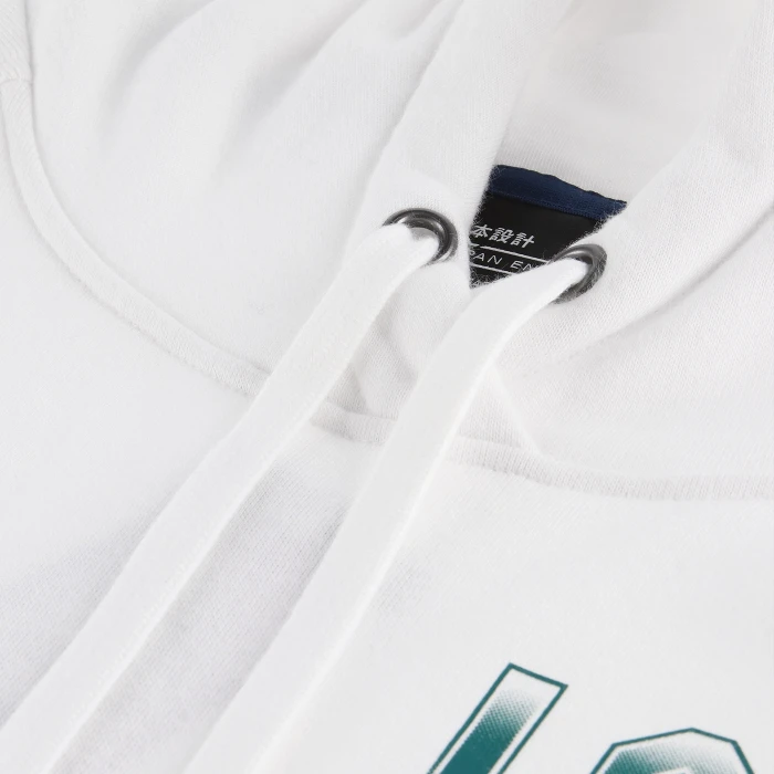 Felpa con cappuccio con maniche lunghe a giro. Cappuccio in 3 sezioni completamente foderato, con coulisse piatta passante attraverso occhielli in metallo sul davanti. Nastro interno collo posteriore in tinta unita. Spalle avanzate con cuciture a vista. Tasca a marsupio sul fondo anteriore con cuciture decorative. Grafica sfumata “Lazio” stampata in gomma al centro del petto e logo Mizuno ricamato sullorlo inferiore destro della tasca a marsupio. Polsini e fondo del capo a costine.