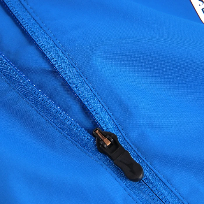 Stemma del club ricamato applicato (badge in tessuto) e logo Mizuno ricamato sul petto. Polsini e fondo della giacca in costina.