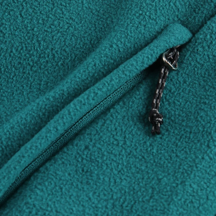 Top in pile con zip intera, maniche lunghe a giro e collo alto. Nastro interno collo posteriore in tinta unita. Zip frontale intera rovesciata con cursore bloccabile, garage e protezione interna. Spalle avanzate con cuciture a vista. Cuciture laterali sagomate con tasche coperte, zip rovesciate e tiranti mélange.