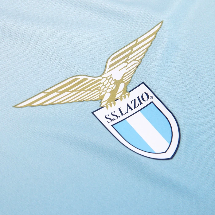 Il design presenta la scritta S.S. Lazio stampata a rilievo tono su tono, all'interno di un motivo geometrico che si ripete sul davanti. Il collo a V, i polsini delle maniche in tessuto con contrasto bianco/navy e il logo del club in silicone mostrato fieramente sul petto a sinistra, definiscono lo stile della maglia Away.