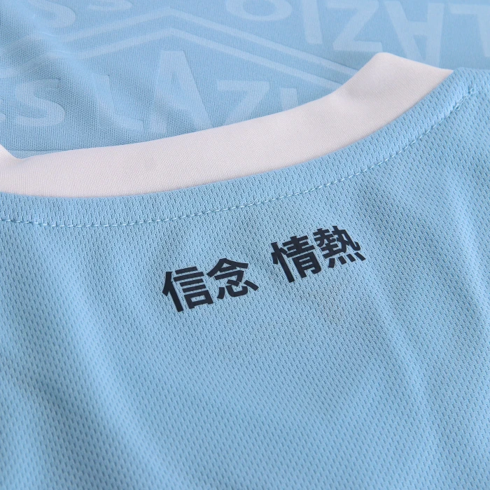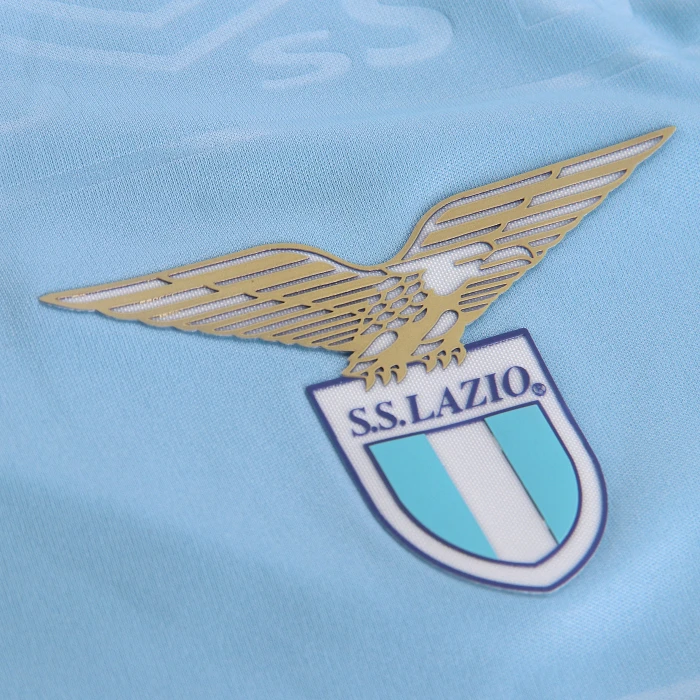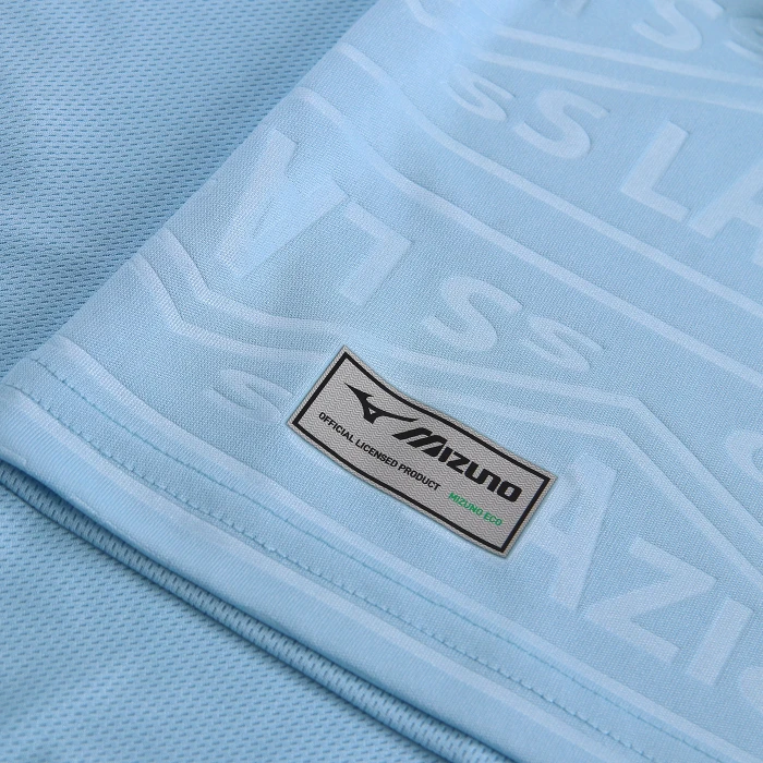 Il kit Home di S.S. Lazio 24/25 firmato Mizuno trae ispirazione da diverse maglie iconiche indossate dal club durante gli anni ’90, rivisitate in chiave moderna. Il design della Maglia Home da donna presenta l’emblematica tonalità di azzurro, con la scritta S.S. Lazio stampata a rilievo tono su tono all’interno di un motivo geometrico ripetuto sul davanti. Lo stile è definito dalla cura dei dettagli come il collo a V, i polsini delle maniche in tessuto con contrasto bianco e navy, e il logo del club in silicone mostrato fieramente sul petto a sinistra. Sul retro della maglia compare il motto ‘Una fede, Una Passione’ scritto in giapponese per ribadire il legame e l’unità fra lo sponsor tecnico, il club e i tifosi. 100% Poliestere