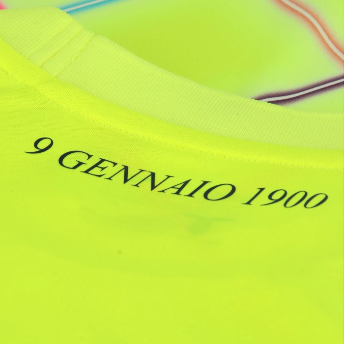 Sul petto spicca il prestigioso crest del club in silicone 3D effetto tatami, accompagnato dai loghi Mizuno applicati a caldo, presenti anche sulle maniche. Sul retro del collo risalta la storica data “9 GENNAIO 1900”, mentre in basso a destra sul davanti è visibile il logo Official Licensed Product, simbolo di autenticità e qualità.