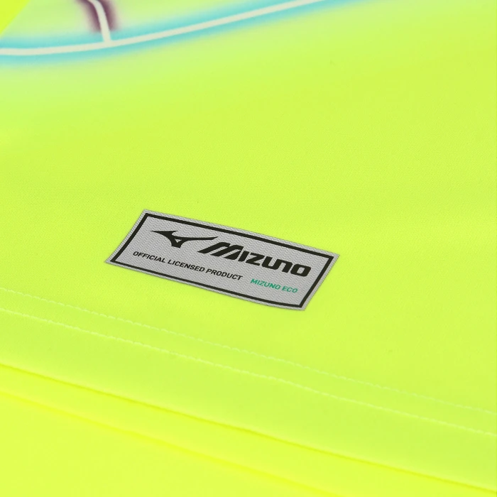 - Crest del club in silicone 3D con loghi Mizuno e dettagli applicati a caldo.