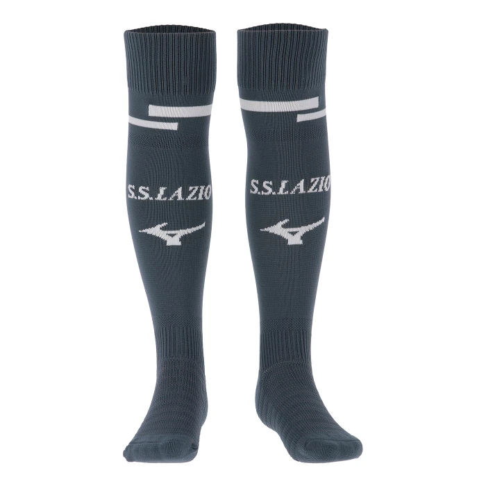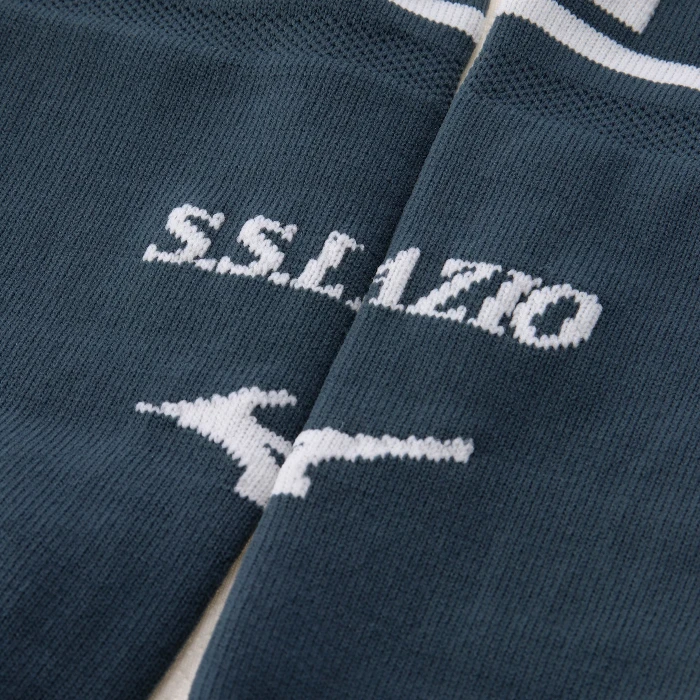 Calzini Motivo jacquard a blocchi a contrasto sulla parte superiore delle gambe. Loghi S.S. LAZIO e Mizuno integrati a maglia su entrambe le gambe. Supporto elastico su polpaccio, caviglia e arco plantare.