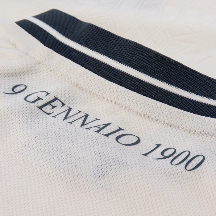 Maglia Pannello frontale in rilievo, retro in mesh e maniche lisce a giro. Colletto girocollo e polsini in costina tinta unita. Nastro interno collo semplice. Crest principale del club e logo Mizuno applicati a caldo su petto e maniche. Scritta 9 GENNAIO 1900 applicata a caldo sul retro del collo.