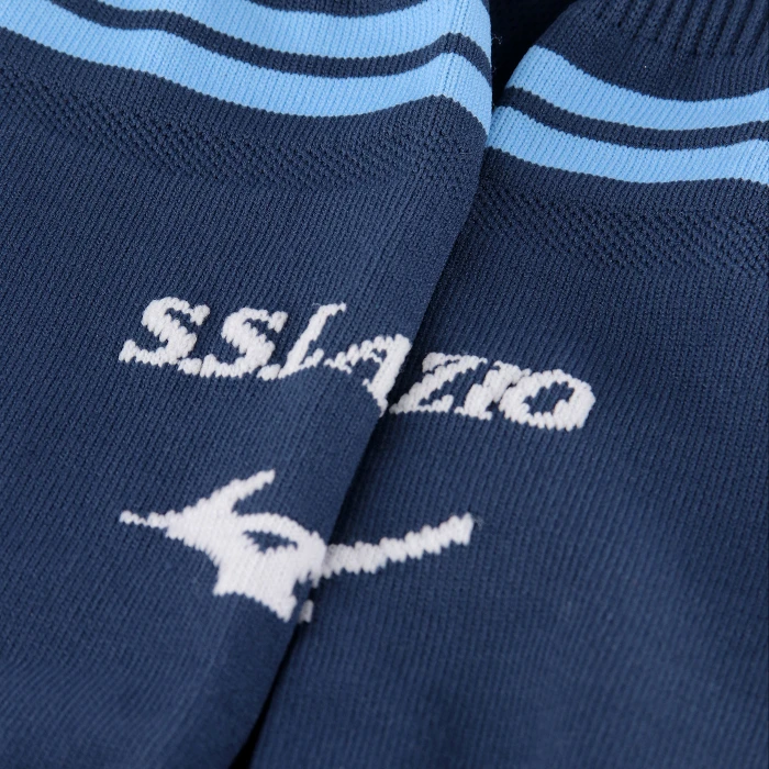 Calzini Motivo jacquard a diamante a contrasto sulla parte superiore delle gambe. Loghi S.S. LAZIO e Mizuno integrati a maglia su entrambe le gambe. Supporto elastico su polpaccio, caviglia e arco plantare.