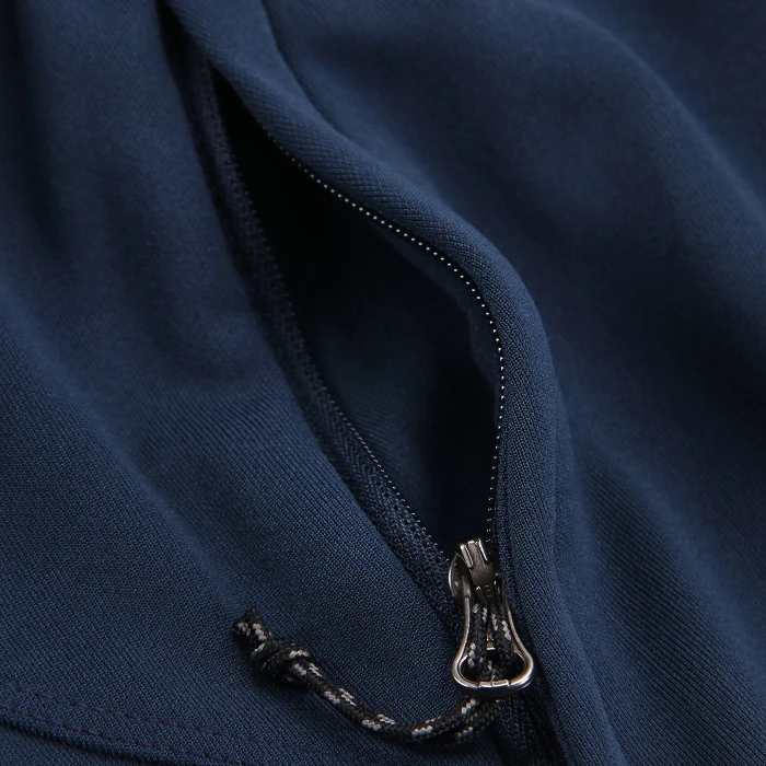 Giacca antipioggia da allenamento con parte anteriore, posteriore e maniche inferiori in tinta unita e design grafico sulle pannellature delle maniche raglan superiori. Collo alto in tinta unita. Carré posteriore con 4 punti di rinforzo a punto fermo. Chiusura frontale con zip completa, garage e protezione. Polsini elasticizzati.