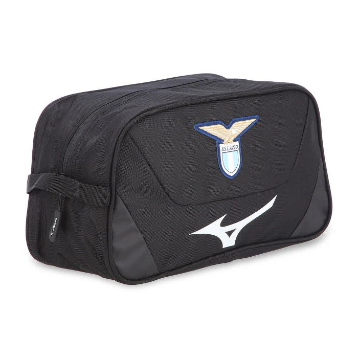 Materiale rivestito in PU con 2 scomparti con zip e tiralampo. Tracolla regolabile con fibbia. Stampa Lazio sul pannello della tasca frontale principale. Logo Mizuno sul pannello inferiore della borsa.