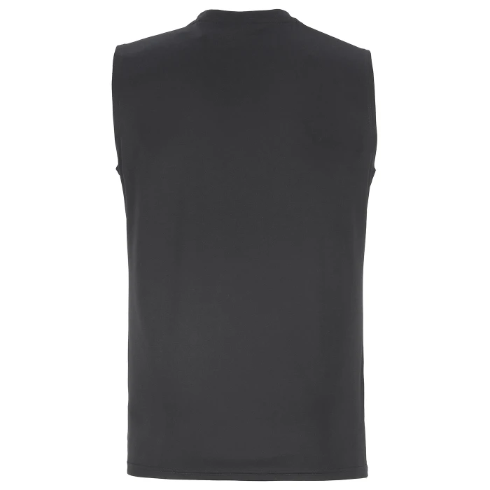 Smanicato da allenamento con grafica sul davanti e retro in tinta unita. Nastro interno collo posteriore in tinta unita.