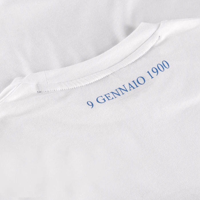 T-shirt grafica della S.S. Lazio per celebrare il 125 anniversario del club, ispirandosi alle tendenze degli anni 70 e 80 e riportando alla luce lo stemma del club di quellepoca. Il design presenta unampia serigrafia dello stemma del club e del testo sul davanti, una serigrafia Mizuno sullorlo inferiore e la scritta 9 GENNAIO 1900 al centro del collo. Composizione : 60% cotone, 40% poliestere.