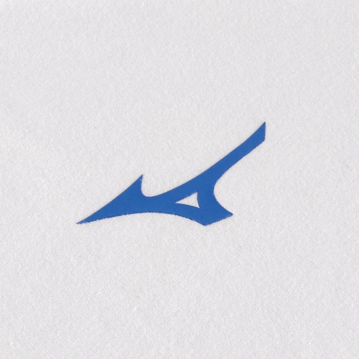 Stemma del club ricamato applicato (badge in tessuto) e logo Mizuno ricamato sul petto. Finitura con bordo elastico su collo, polsini e orlo dritto del capo.