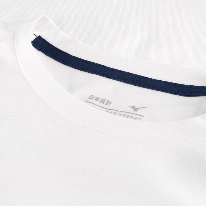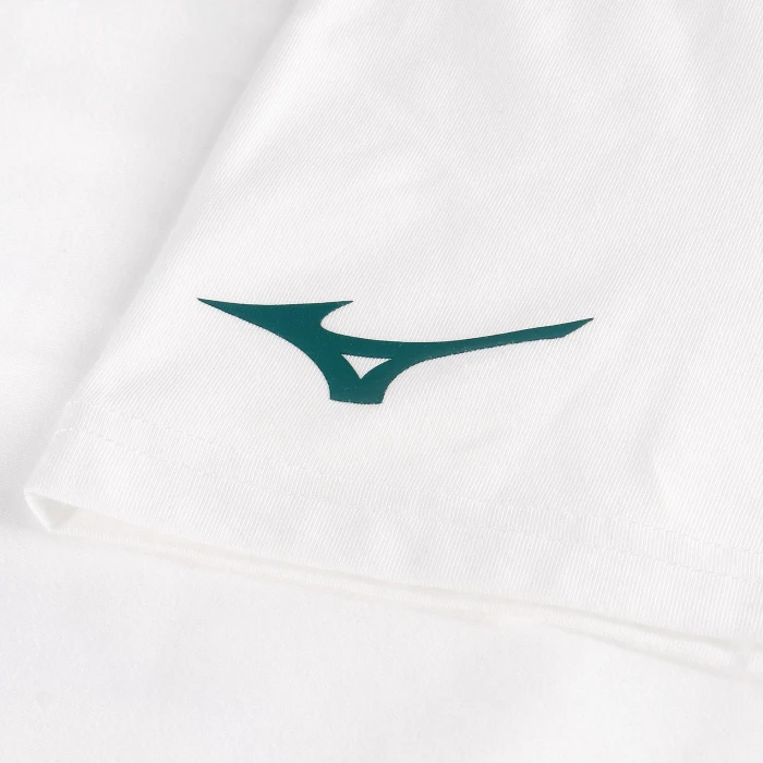 Grafica sfumata "Lazio" e logo Mizuno stampati in gomma al centro del petto. Cuciture a doppio ago su maniche e orlo inferiore.
