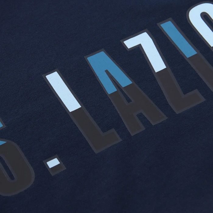 Grafica sfumata "Lazio" e logo Mizuno stampati in gomma al centro del petto. Cuciture a doppio ago su maniche e orlo inferiore.
