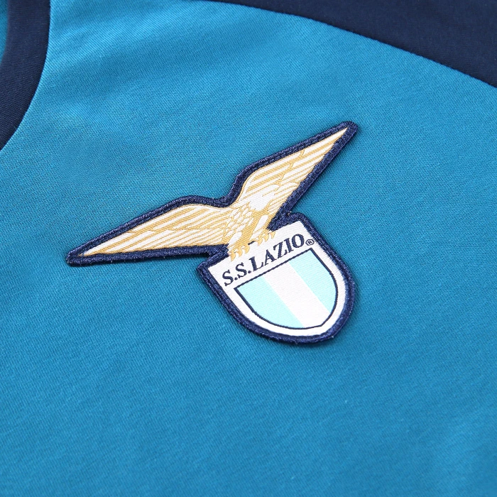 Questa maglia Home celebra il 125 anniversario della S.S. Lazio, ispirandosi alle tendenze degli anni 70 e 80 e riportando alla luce lo stemma del club di quellepoca. La maglia è composta da un mix di corpo anteriore in rilievo e strisce sublimate sul lato anteriore, retro in tessuto a rete e maniche in tinta unita. Collo a V in tinta unita e bordi delle maniche a righe. La scritta 9 GENNAIO 1900, trasferita a caldo, si trova sul retro del collo. Scritta posteriore a tinta unita sul collo. Composizione: Vestibilità standard 100% poliestere riciclato.
