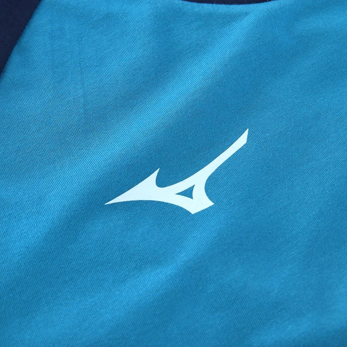 Stemma del club ricamato applicato (badge in tessuto) e logo Mizuno stampato in gomma sul petto.