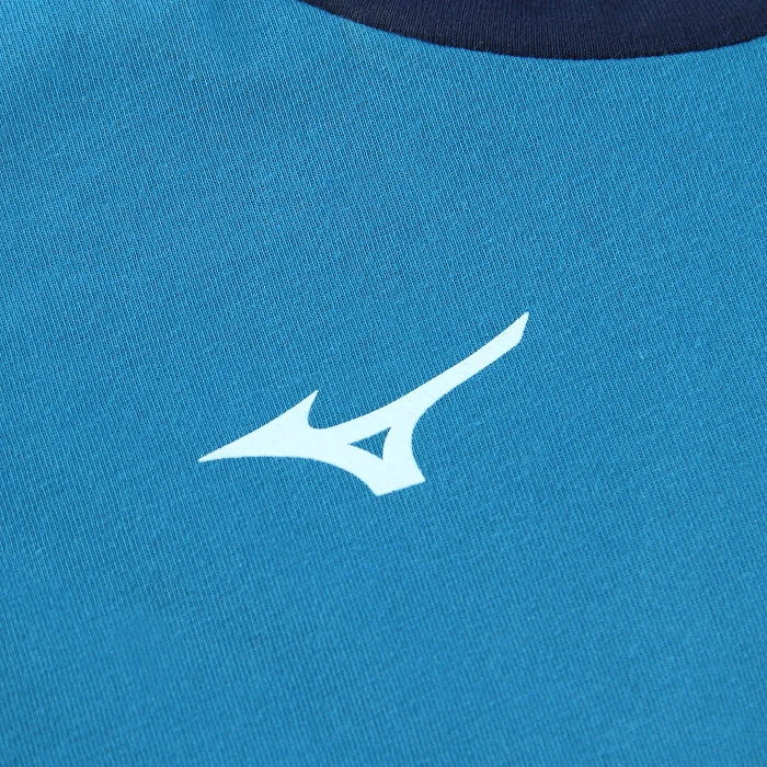 Stemma del club ricamato applicato (badge in tessuto) e logo Mizuno stampato in gomma sul petto.