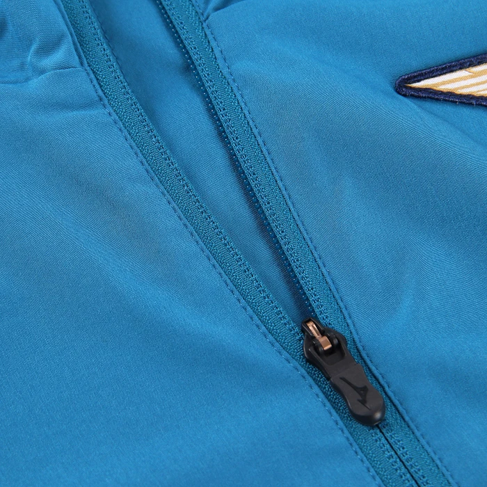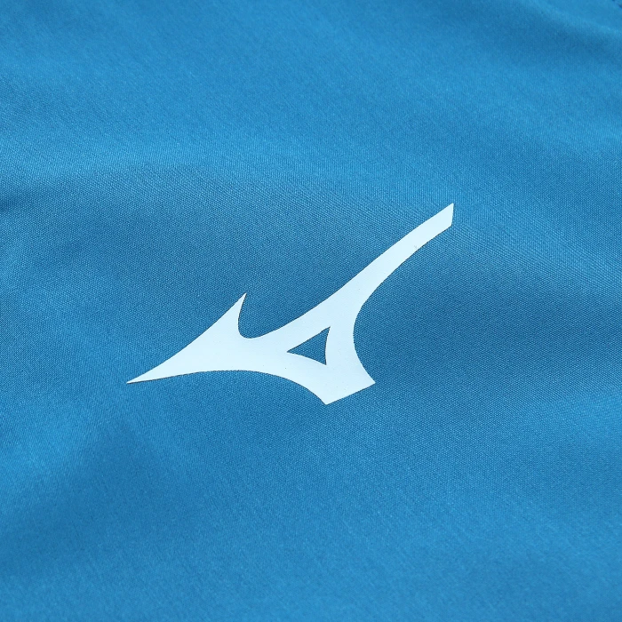 Stemma del club ricamato applicato (badge in tessuto) e logo Mizuno ricamato sul petto. Finitura con bordo elastico su collo, polsini e orlo dritto del capo.