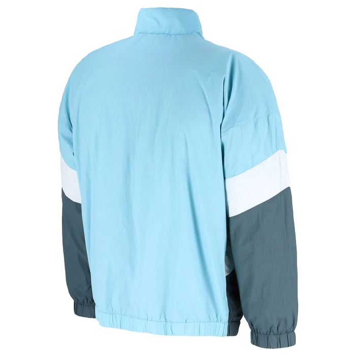 Giacca con pannelli tagliati e cuciti a contrasto sul davanti e sulle maniche. Schiena in tinta unita e collo alto. Zip frontale a vista con garage e protezione interna. Tasca a marsupio a contrasto sul fondo della giacca con zip rovesciate e cursori di sicurezza. Polsini delle maniche e orlo della giacca con finitura elasticizzata.