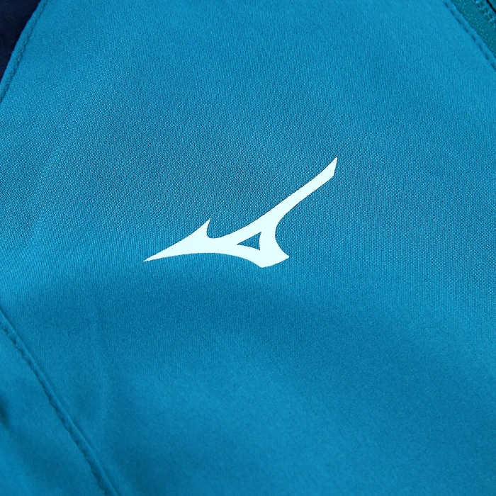 Orlo dritto sul davanti e orlo posteriore curvo e più lungo per un maggiore comfort. Nastro interno collo a contrasto. Stemma del club e logo Mizuno applicati a caldo sul petto; nastro termosaldato sulle maniche.